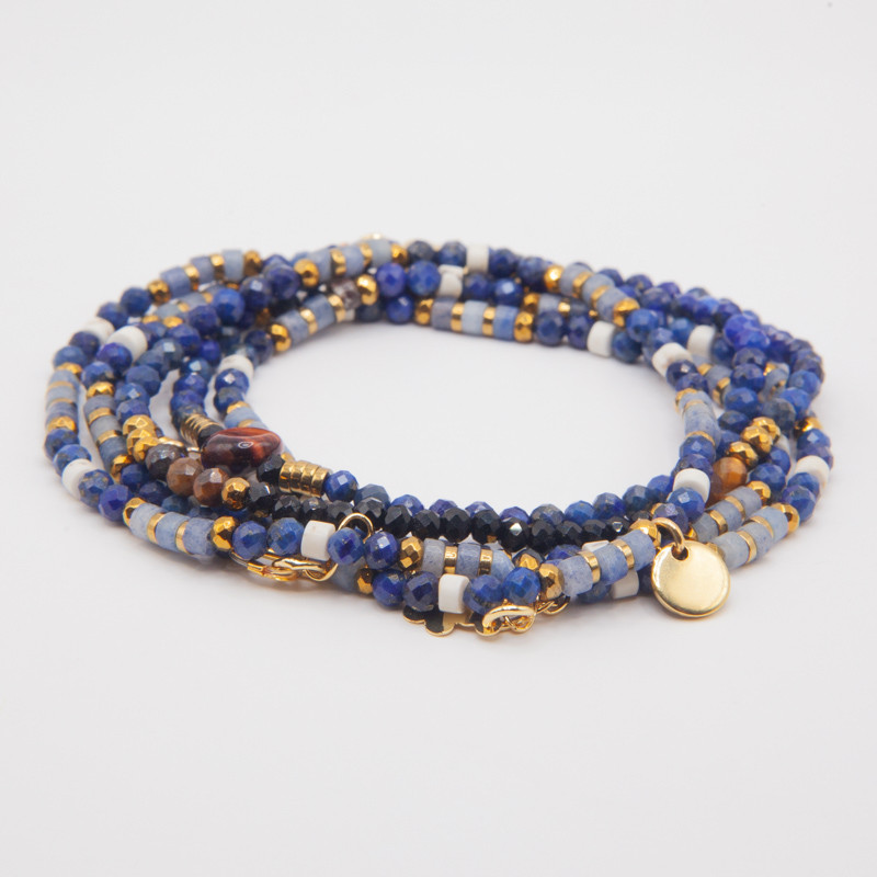 Le lapis lazuli, aux reflets bleu nuit constellés d’or, invite à la sagesse et à la contemplation intérieure.