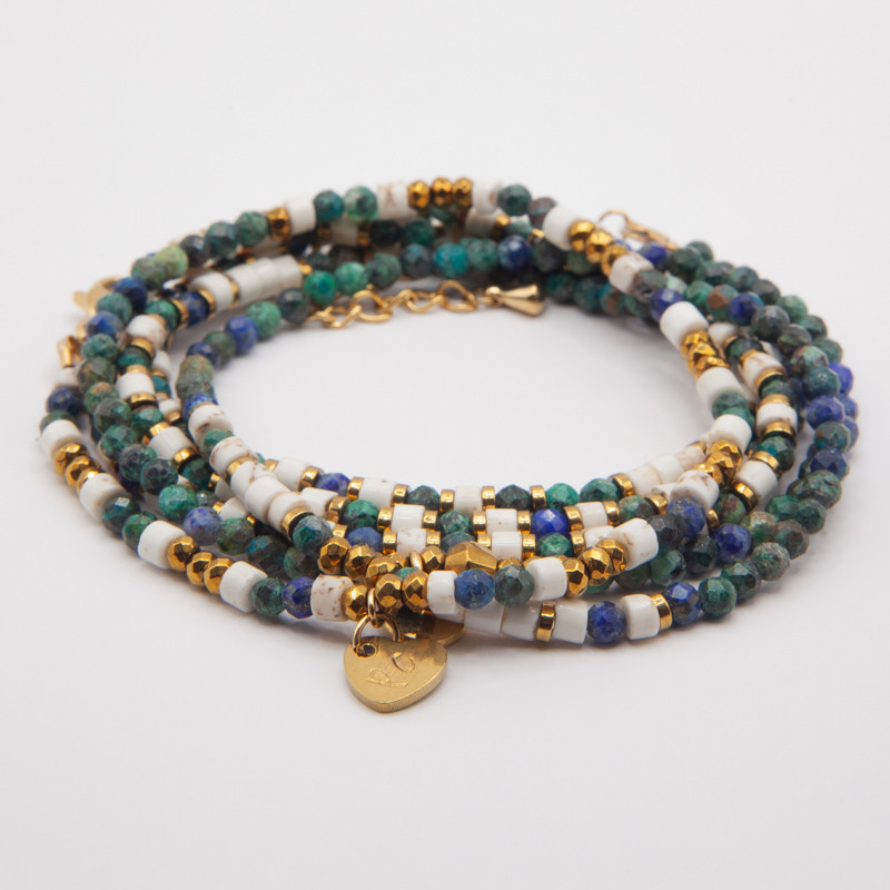 Bijou fait main, fil ultra résistant. Fermoir doré en acier inoxydable 304L, finition PVD or 18 carats.
